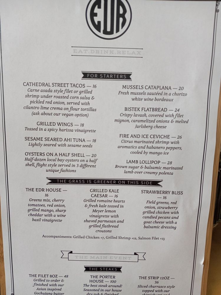 Welcome to Eat Drink Relax, a New American restaurant located at 1001 Cathedral St Baltimore, MD 21201. This trendy and classy establishment offers a range of delicious menu options, from seafood to bar favorites. The menu features mouthwatering breakfast and brunch entrees such as apple pie stuffed french toast, crabby benedict, and hot skillet steak & eggs. For those with a sweet tooth, the sinfully sweet dark chocolate brownie and warm doughnut twist are sure to satisfy. And don't miss out on the steaks, including the filet 8oz and the porterhouse. The relaxed and intimate atmosphere, along with amenities like outdoor seating and free Wi-Fi, make Eat Drink Relax the perfect spot to unwind and enjoy a great meal with friends or loved ones. Call (443) 449-5591 to make a reservation and experience the culinary delights for yourself.
